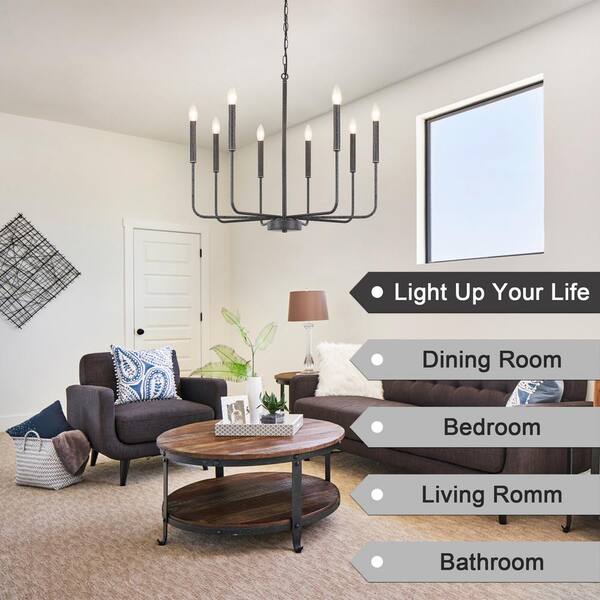 8-light Rust-Colored Black Candlestick Chandelier for Kitchen with no bulbs included