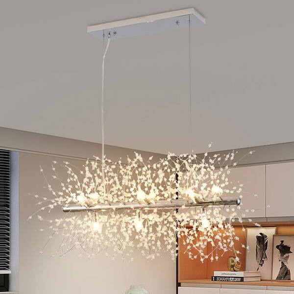 9 - Light Dimmable Chrome Crystal Firework Chandelier For Kitchen Island,Dining Room with No Bulbs Included
