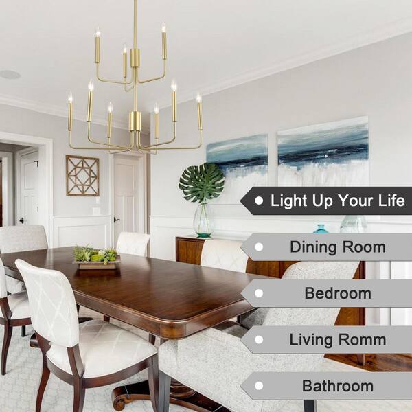 9-Light Gold Height Adjustable Modern Linear Candlestick Chandelier, Hanging Light Fixture
