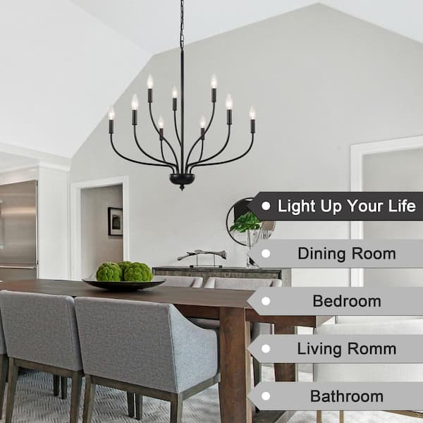 9-Light Modern Farmhouse Black Chandelier Classic Candlestick Dining Room Pendant Light