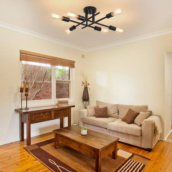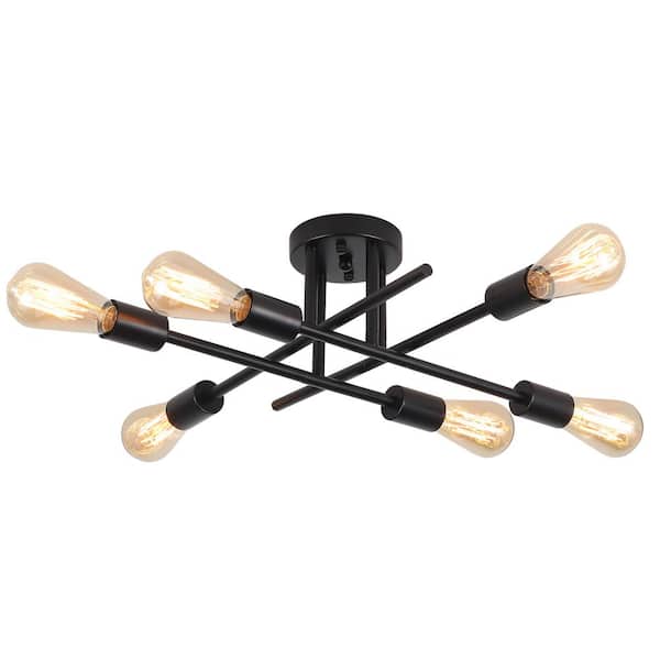 Modern 18.1 in. 6-Light Black Sputnik Linear Semi- Flush Mount Ceiling Lights