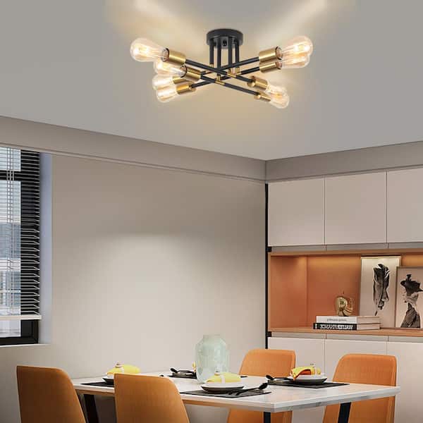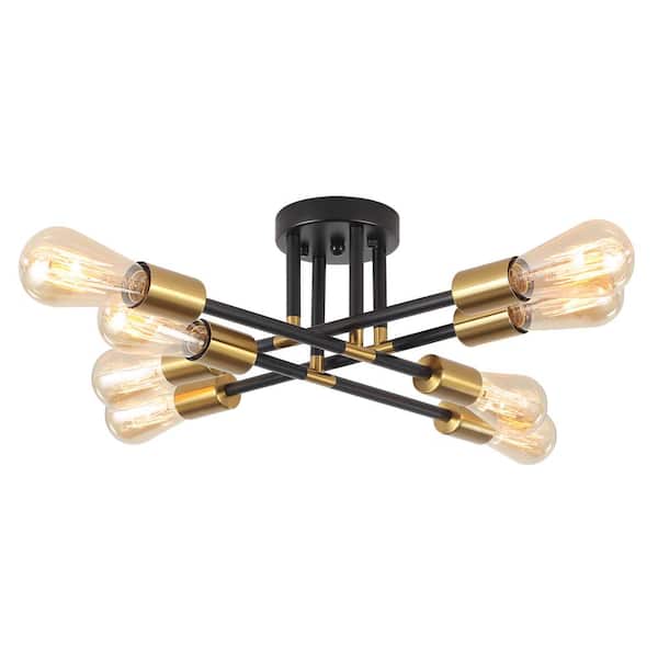 Modern 20.86 in. 8-Light Black and Gold Sputnik Linear Semi- Flush Mount Ceiling Lights