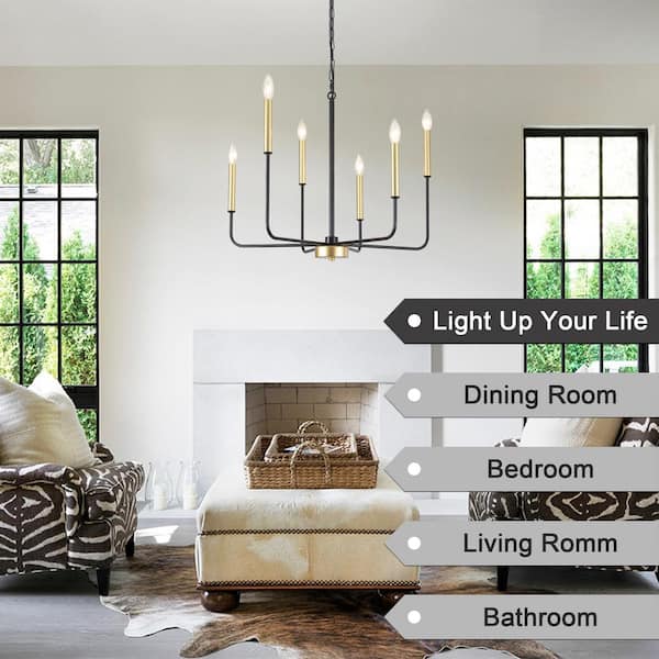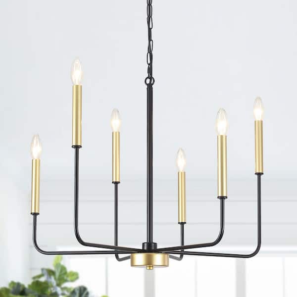Modern 6-Light Black & Gold Linear Candlestick Chandelier Farmhouse Vintage Pendant Light