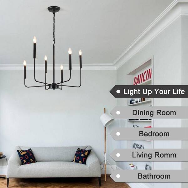 Modern 6-Light Black Linear Candlestick Chandelier Farmhouse Vintage Pendant Light