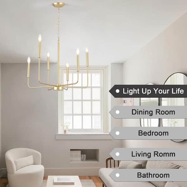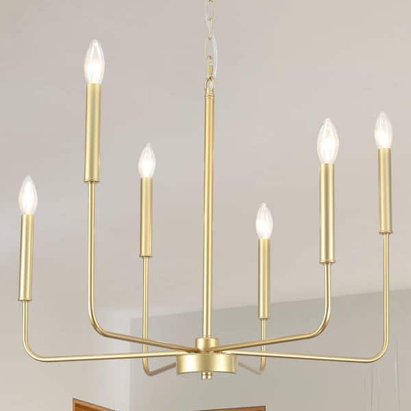 Modern 6-Light Gold Linear Candlestick Chandelier Farmhouse Vintage Pendant Light