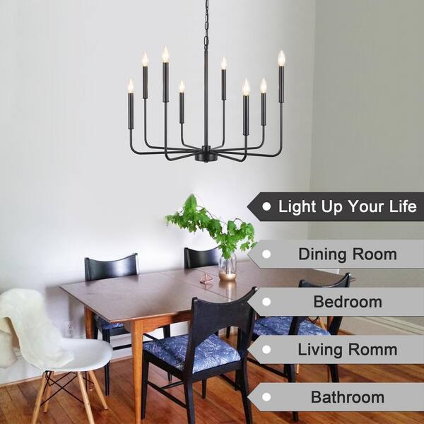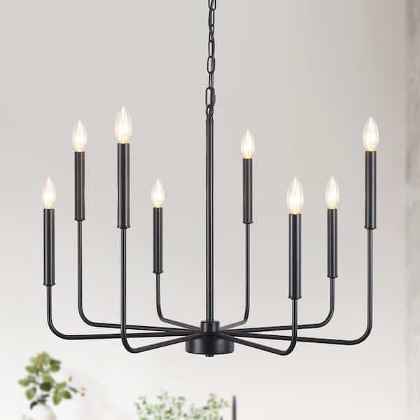 Modern 8-Light Black Linear Candlestick Chandelier Farmhouse Vintage Pendant Light