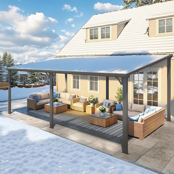 20 ft. x 12 ft. Outdoor Pergola Hardtop Gazebo, Wall-Mounted Heavy Duty Lean to Metal Patio Cover