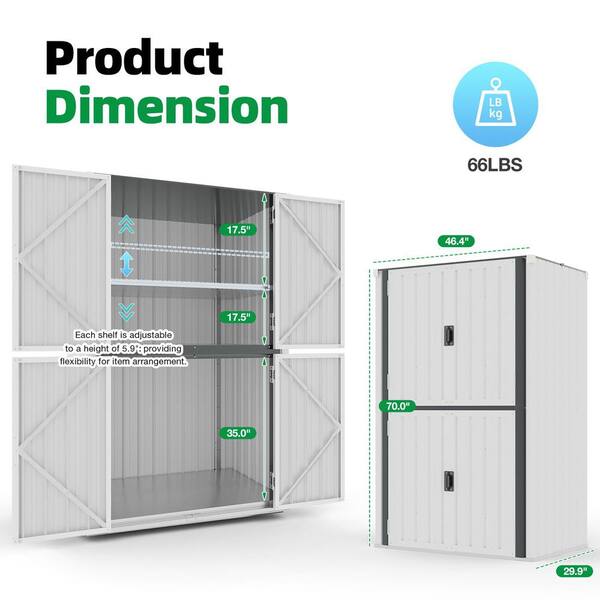 3.86 ft. W x 2.49 ft. D Outdoor Metal Storage Cabinet Shed with Shelves and 4-Lockable Doors, White (9.6 sq. ft. )