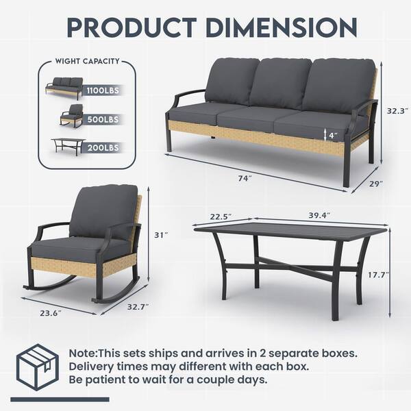 4 Piece Outdoor Patio Rattan Furniture Set with Rocking Chair and Coffee Table, Grey