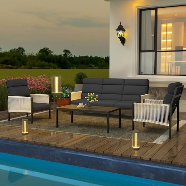 4-Pieces Outdoor Aluminum Patio Sectional Furniture Set with Coffee Table and Cushions in Dark Grey