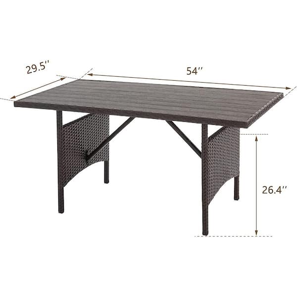 54 in. Brown Wicker Metal Outdoor Rattan Dining Table with Frame