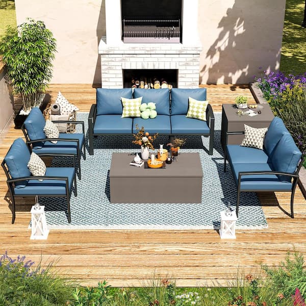 6-Piece Metal Patio Conversation Set w/ Blue Cushions and Storage Boxes