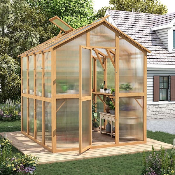 65 in. W x 79.5 in. D x 82.7 in. H Wood Greenhouse for Outdoors with Openable Window & Lockable Door