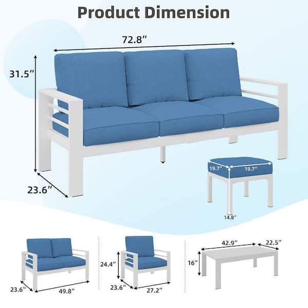 7 Pieces Outdoor Conversation Set, Aluminum Modern Patio Furniture Set with Coffee Table in Blue Cushions