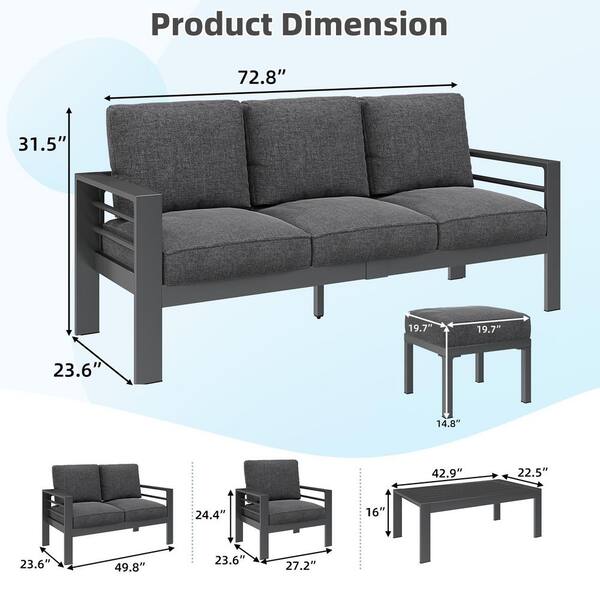 Gray 7-Piece Aluminum Patio Conversation Set with Ottomans and Dark Gray Cushions