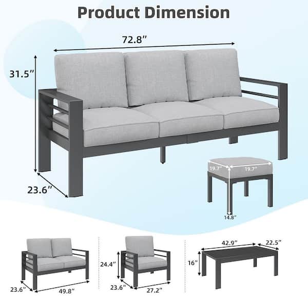 Gray 7-Piece Aluminum Patio Conversation Set with Ottomans and Gray Cushions