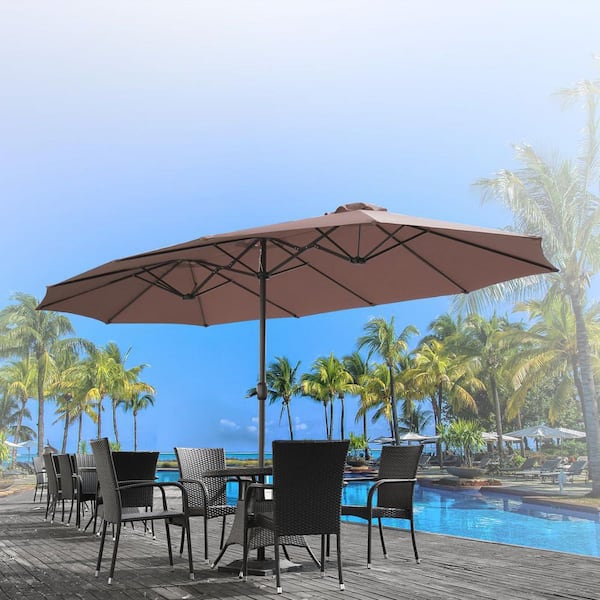 Outdoor 15 ft. Steel Market Patio Umbrella Double-Sided Twin Patio Umbrella with Crank in Brown