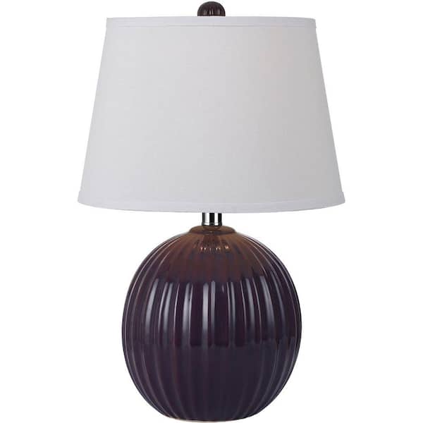 Bleeker 20.5 in. Purple Ceramic Ribbed Ball Table Lamp