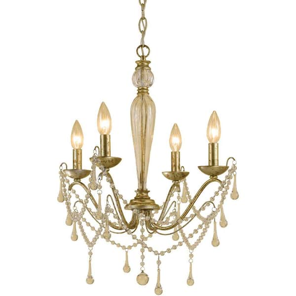 Sophia 4-Light Golden Tortoise Mini Chandelier with Glass Bead Accents