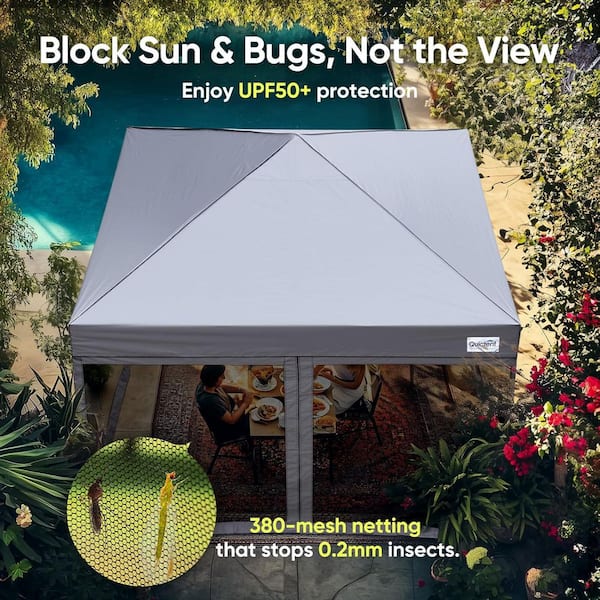 10 ft. x 10 ft. Pop up Screened Canopy Tent with Mosquito Netting, Portable Easy Up Outdoor Screen House Shelter-Gray