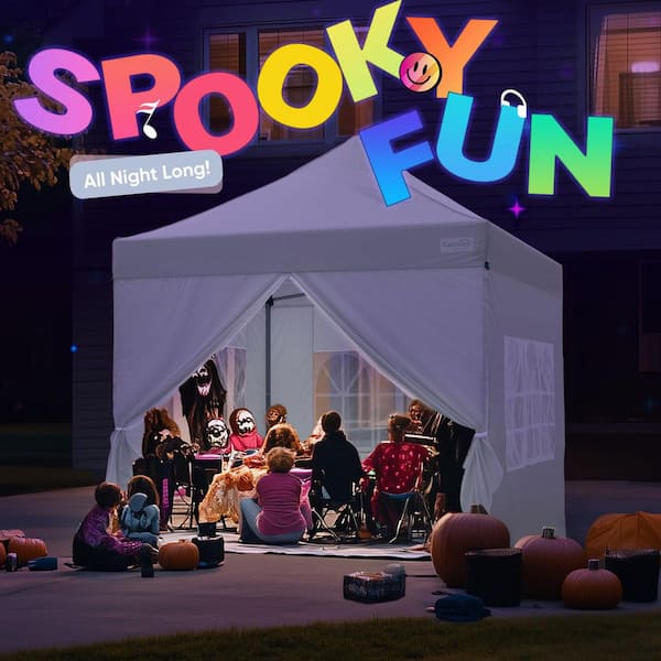 10 ft. x 10 ft. White Heavy Duty Pop Up Canopy Tent with Enclosed Sidewalls, Outdoor Gazebo for Party, Wedding