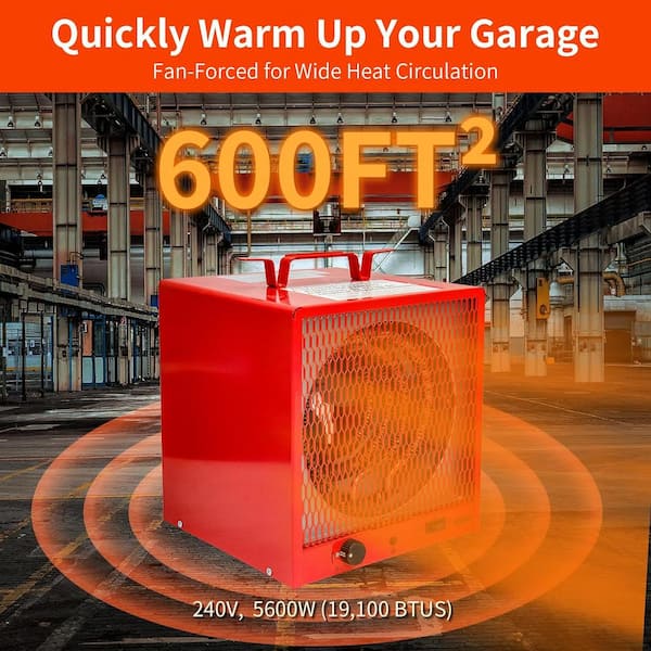 240V Fan-Forced Industrial Space Heater 5600-Watt, Heats up to 600 sq. ft., 6 ft. Cord, Integrated Thermostat Control