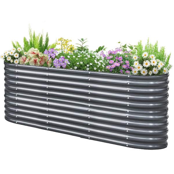 94.5 in. x 23.6 x 34.2 in. Dark Grey Metal Raised Garden Bed 2.85 ft. Tall 9 in 1 Galvanized Planter Garden Box Garden