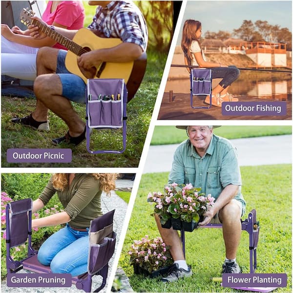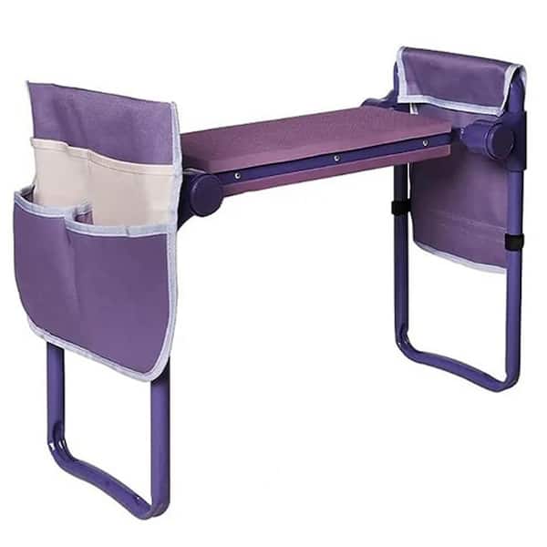Metal Garden Stool, Garden Kneeler and Seat Folding Kneeling Bench Stool with Tool Pouches Soft EVA Foam, Purple
