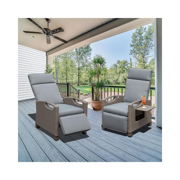 Metal Outdoor Recliner Chair with Gray Cushions and Side Table, Adjustable Backrest, 6.8 in. Removable Cushions