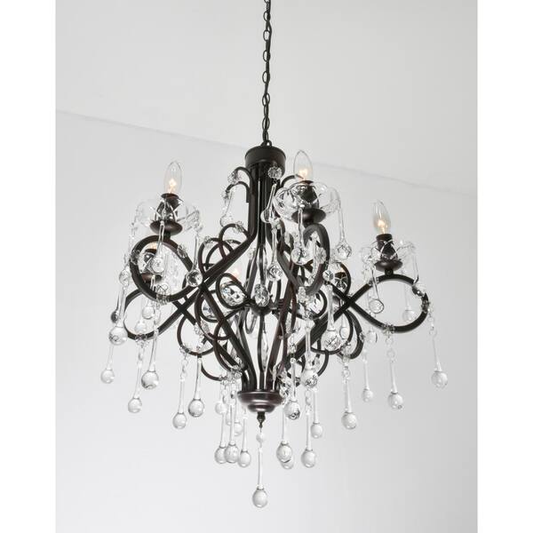 6-Light Black Crystal Empire Chandelier for Living Room with No Bulbs Included