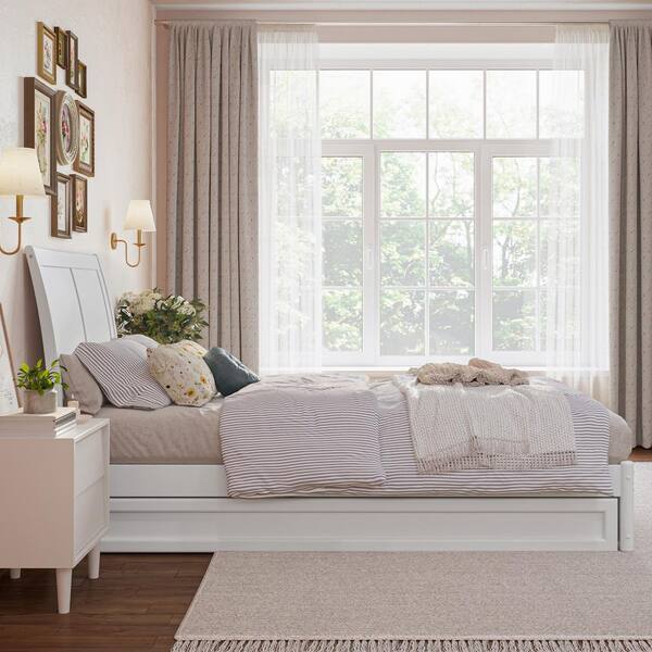 Andorra White Solid Wood Frame Twin XL Platform Bed with Panel Footboard and Twin XL Trundle