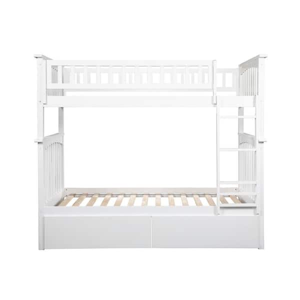 Columbia Bunk Bed Twin over Twin with 2 Urban Bed Drawers in White