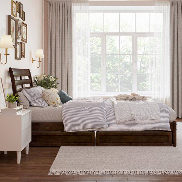 Emelie Walnut Brown Solid Wood Frame Twin XL Platform Bed with Panel Footboard and Storage Drawers