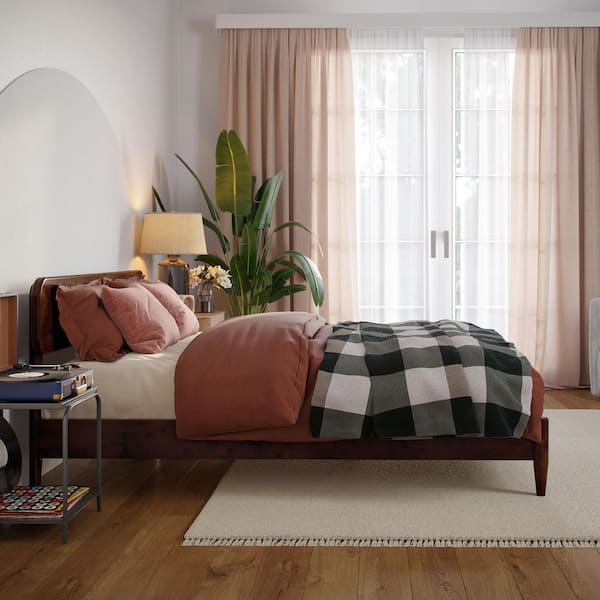 Florence Walnut Brown Solid Wood Frame Full Low Profile Platform Bed