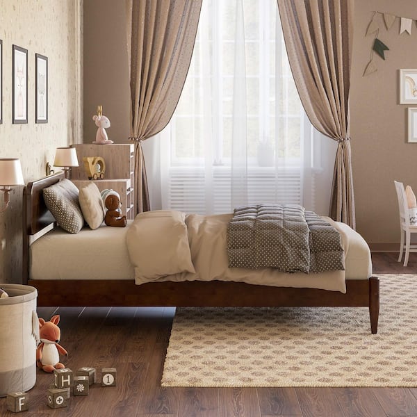 Florence Walnut Brown Solid Wood Frame Twin Low Profile Platform Bed