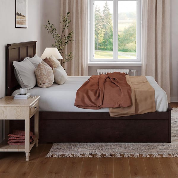 Madison Espresso Black Solid Wood Frame King Platform Bed with Matching Footboard and Twin XL Trundle