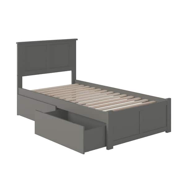 Madison Grey Twin Solid Wood Storage Platform Bed with Flat Panel Foot Board and 2 Bed Drawers