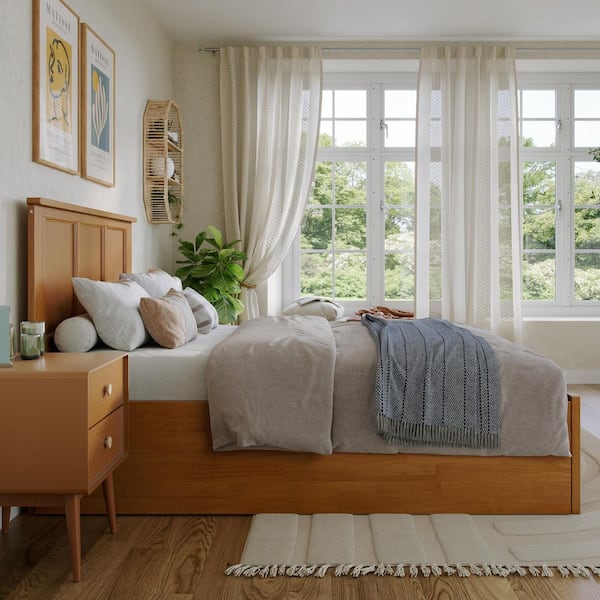 Madison Light Toffee Natural Bronze Solid Wood Frame Full Platform Bed with Footboard and Twin Trundle