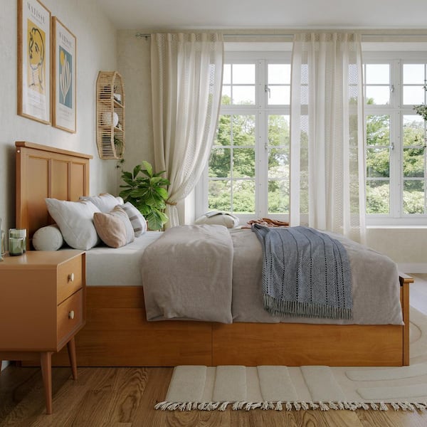 Madison Light Toffee Natural Bronze Solid Wood Frame Full Platform Bed with Matching Footboard and Storage Drawers