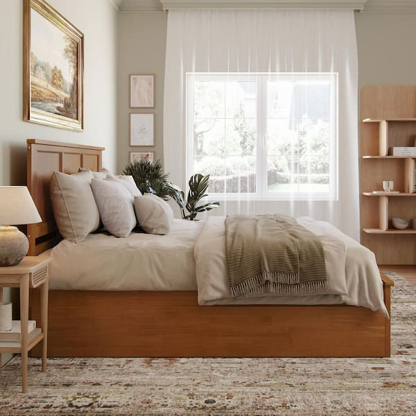 Madison Light Toffee Natural Bronze Solid Wood Frame King Platform Bed with Matching Footboard and Twin XL Trundle