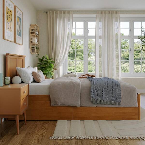 Madison Light Toffee Natural Bronze Solid Wood Frame Twin XL Platform Bed with Footboard and Storage Drawers