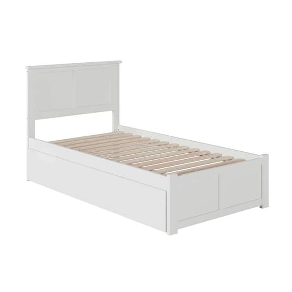 Madison White Twin Platform Bed with Flat Panel Foot Board and Twin Size Urban Trundle Bed