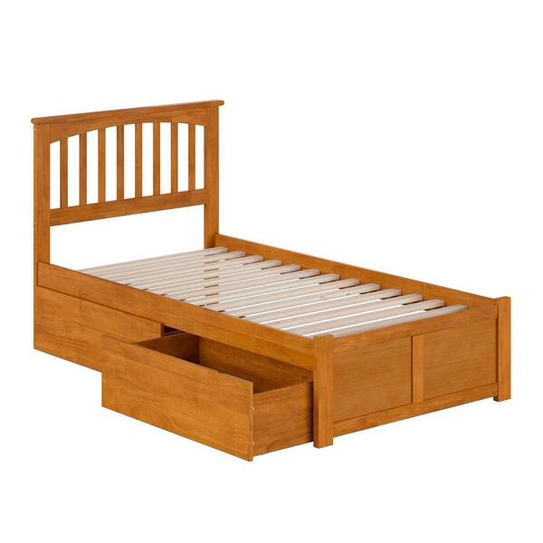 Mission Light Toffee Natural Bronze Solid Wood Frame Twin Platform Bed with Footboard and Storage Drawers