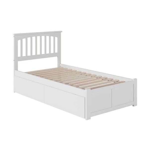 Mission White Twin XL Solid Wood Storage Platform Bed with Flat Panel Foot Board and 2 Bed Drawers