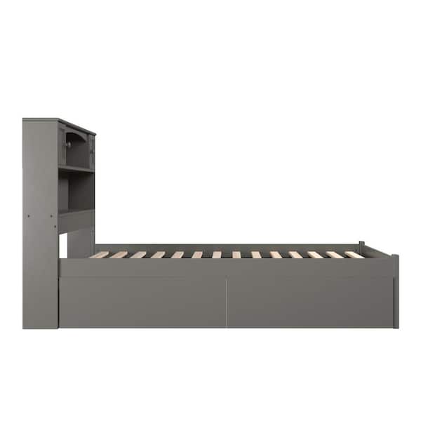 Newport Grey Full Solid Wood Storage Platform Bed with Flat Panel Foot Board and 2 Bed Drawers
