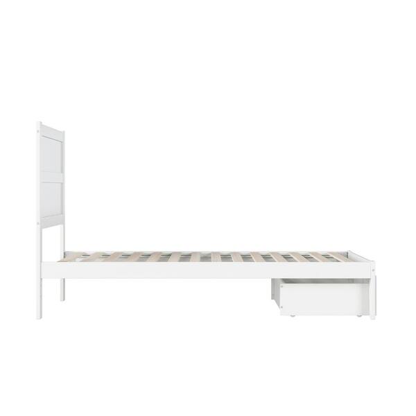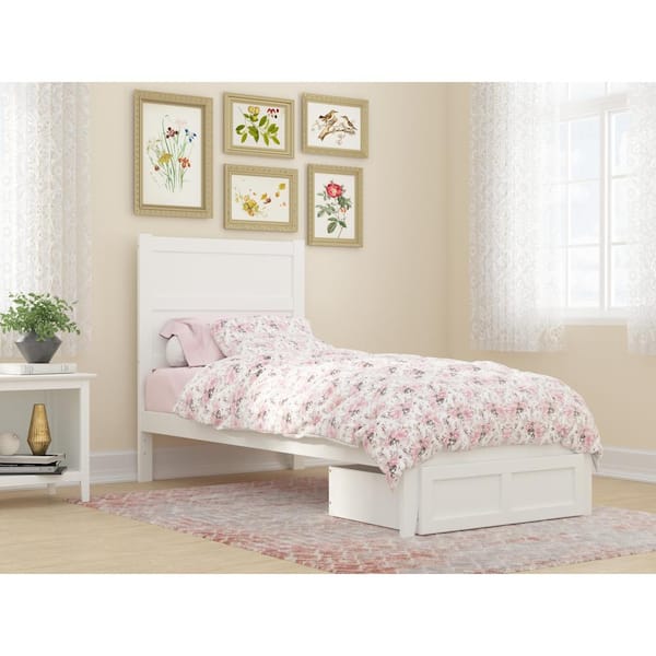 NoHo White Twin Extra Long Solid Wood Storage Platform Bed with Foot Drawer and Attachable USB Charger