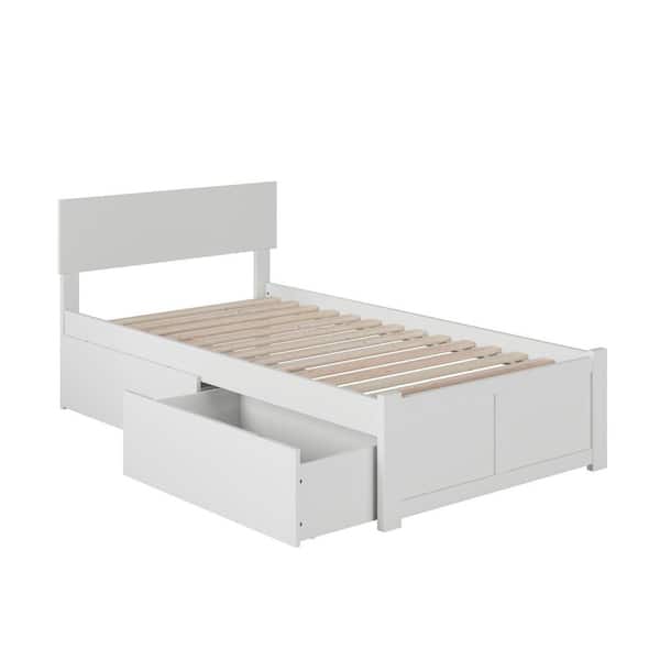 Orlando White Twin XL Solid Wood Storage Platform Bed with Flat Panel Foot Board and 2 Bed Drawers