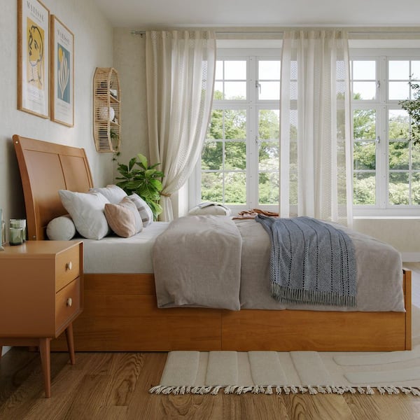 Portland Light Toffee Natural Bronze Solid Wood Frame Full Platform Bed with Footboard and Storage Drawers