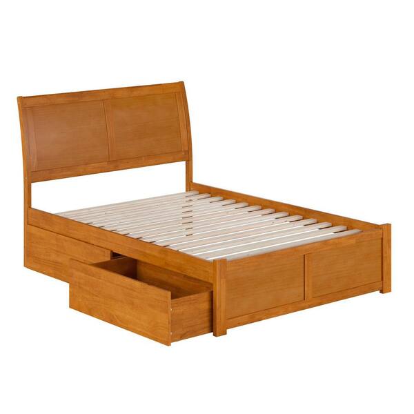 Portland Light Toffee Natural Bronze Solid Wood Frame Full Platform Bed with Footboard and Storage Drawers