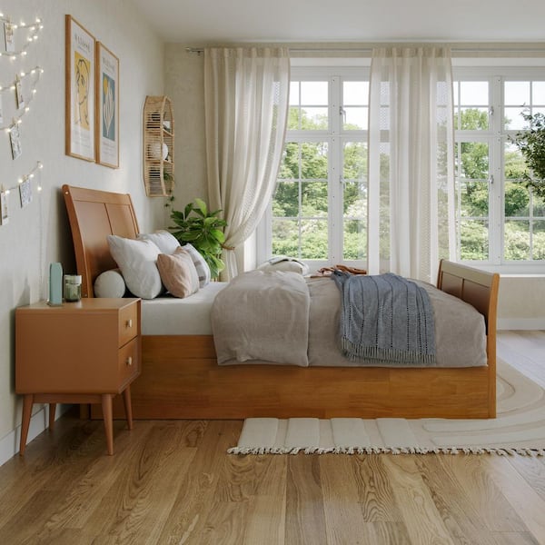 Portland Light Toffee Natural Bronze Solid Wood Frame Full Platform Bed with Matching Footboard and Full Trundle